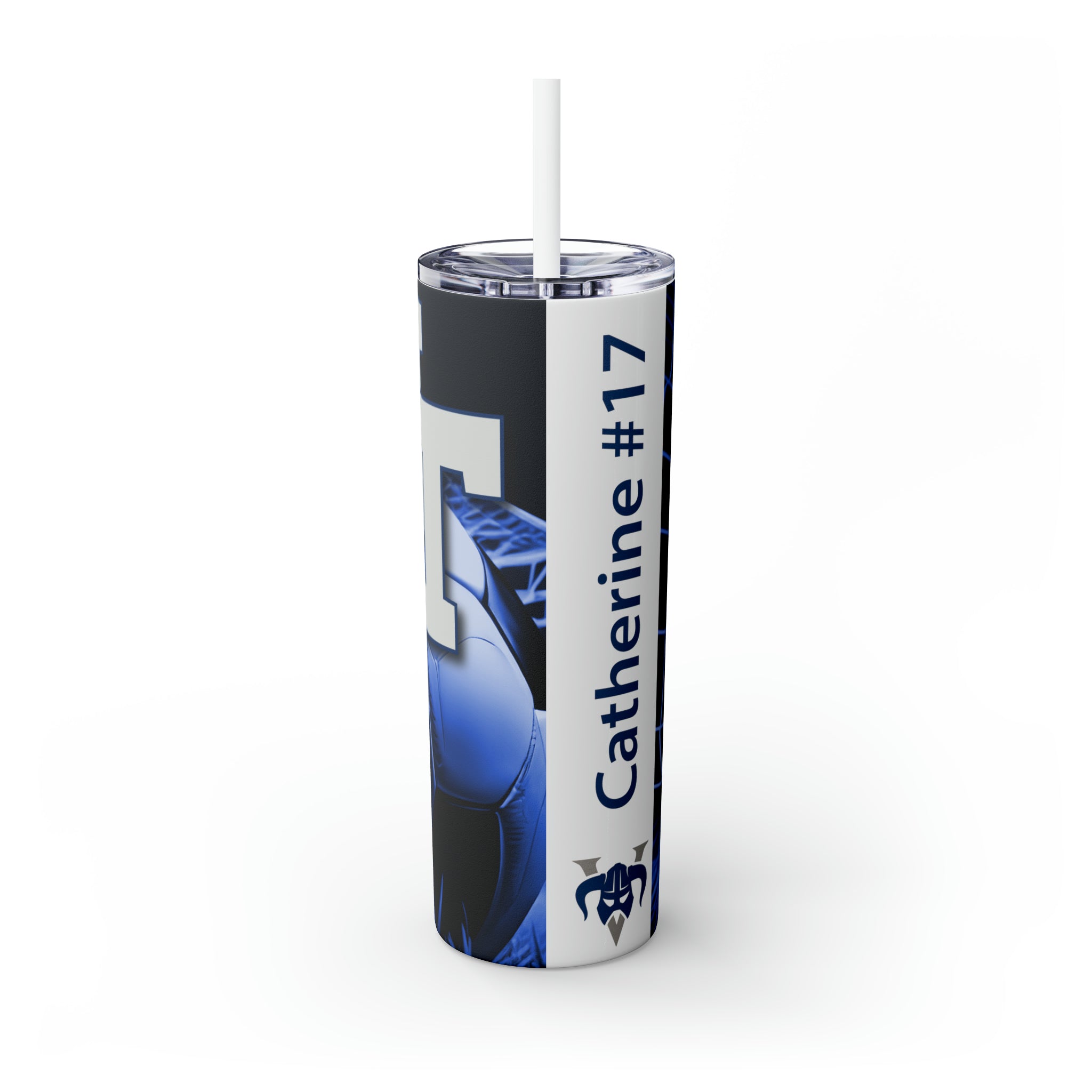 The Maars personalized skinny tumblers keep your drinks hot for 12h and cold for 24h, making them the perfect sipping companion all year round. With 20oz capacity, these tumblers come in a matte or glossy finish, and feature a tapered shape with a slim design for effortless carriage. The plastic press-on lid with color-matching straw makes for great practicality on the go, while all components are BPA-free and non-toxic; aka perfect for the whole family.